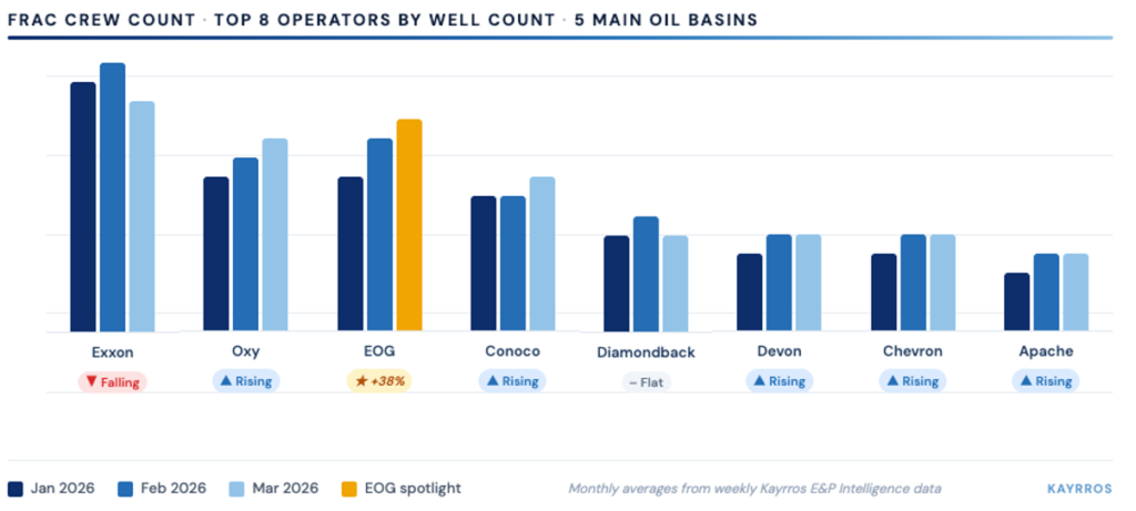 The Bottom Line: On the surface, oil basin activity looks stable. In reality, two very different bets are being made on the future of energy. The unanswered question is, has the war triggered a bidding war for active frac crews in which major public companies have the upper-hand?