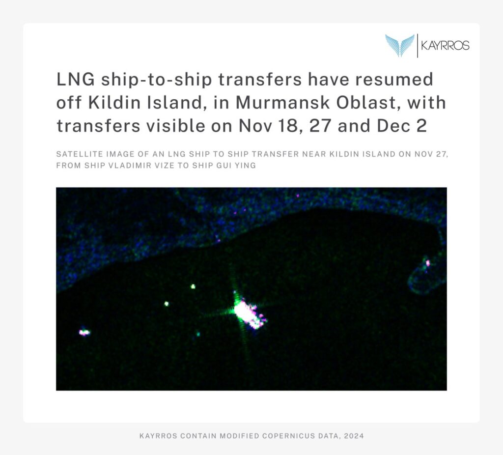 • Ship-to-ship transfers happened off Kildin Island, Russia on Nov 18, Nov 27 and Dec 2 2024.