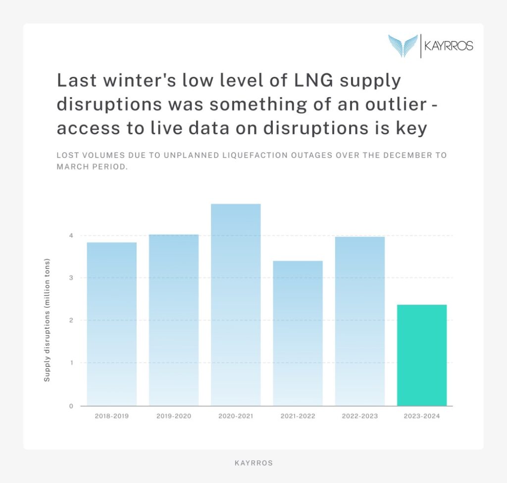 • Winter LNG supply outages vary significantly from year to year, with nearly twice as many outages in 2020-21 as in 2023-24.
